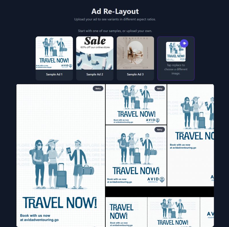 Try any of the demos below as we work toward more efficient and powerful technology solutions for creatives and marketers. We welcome your feedback as professional end users.